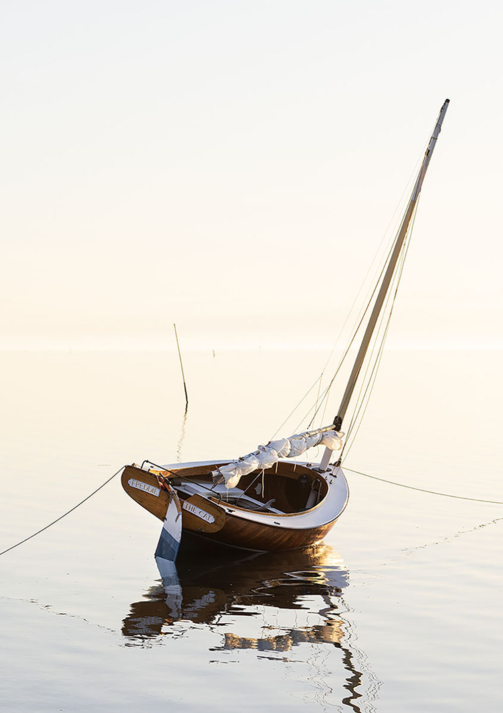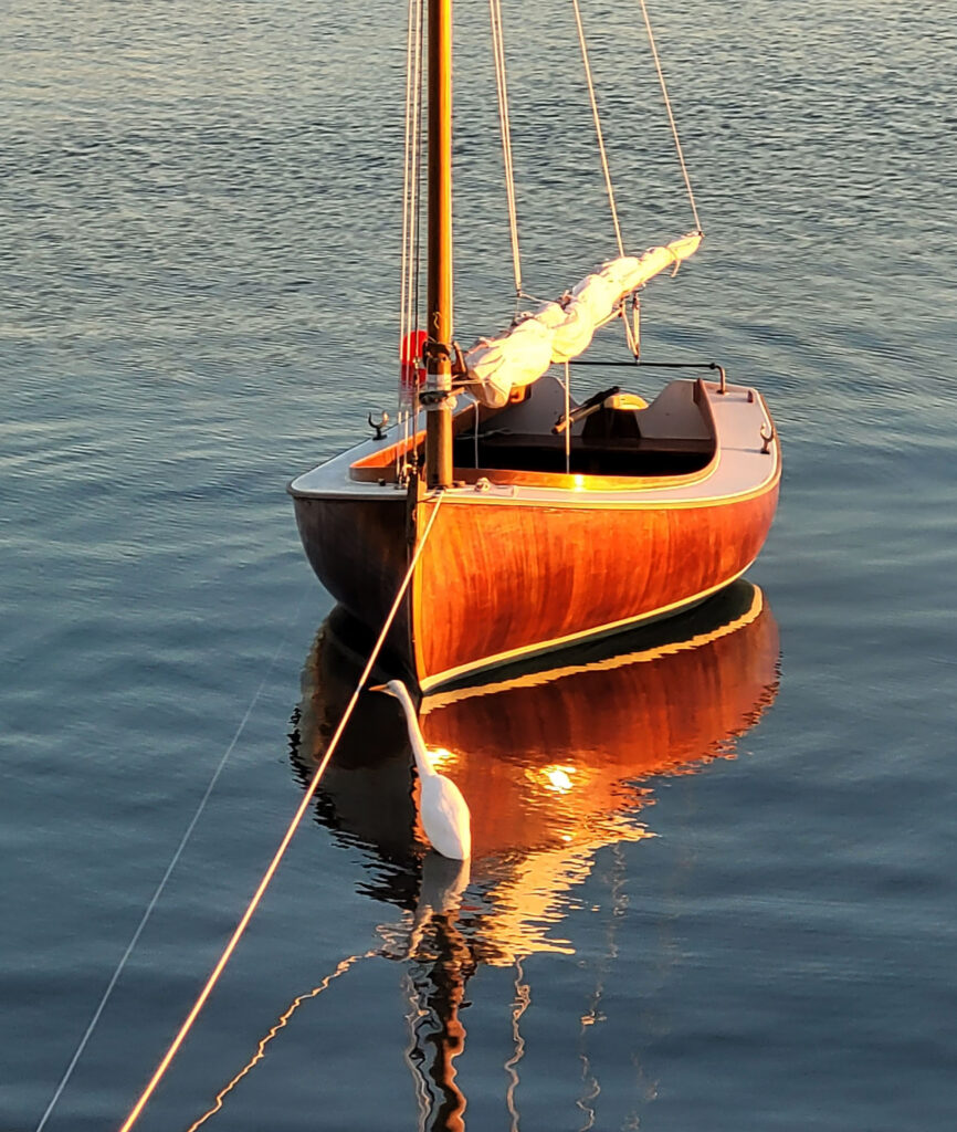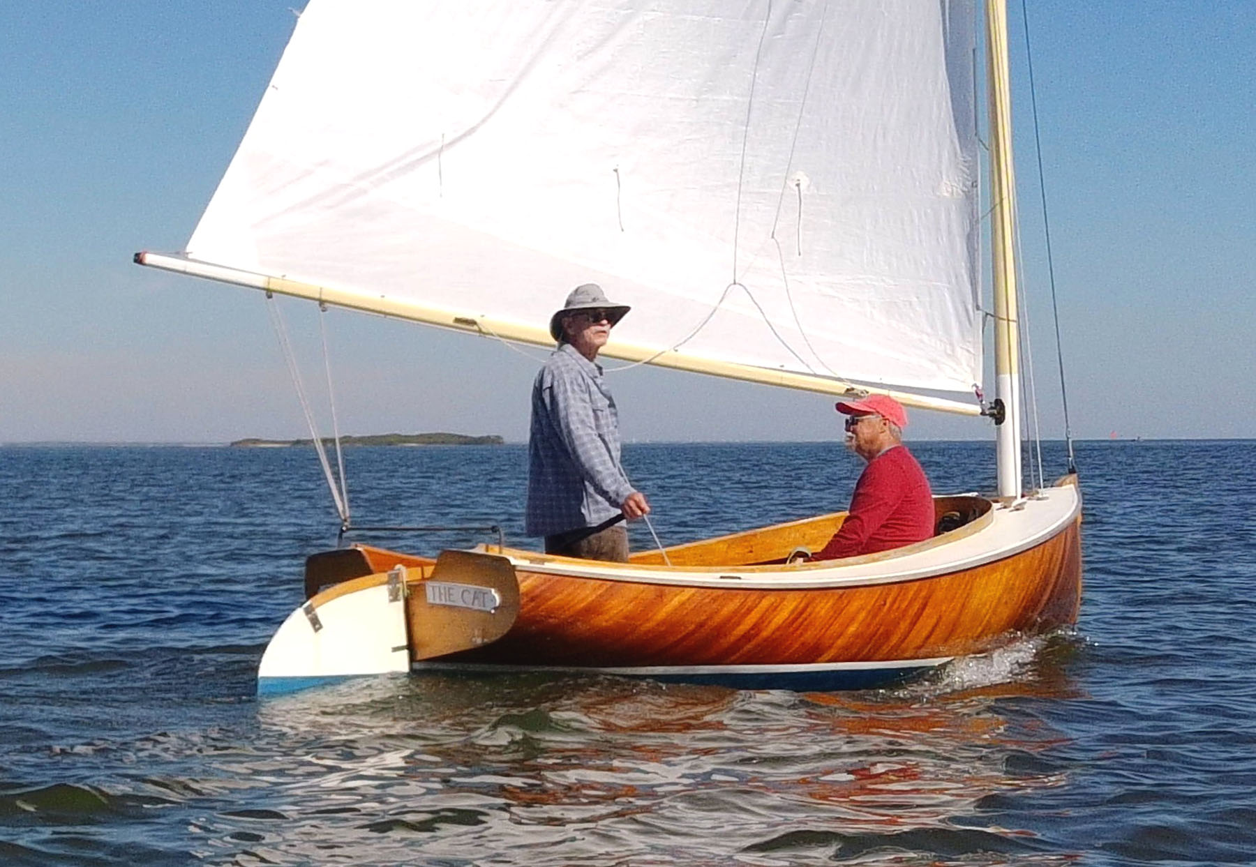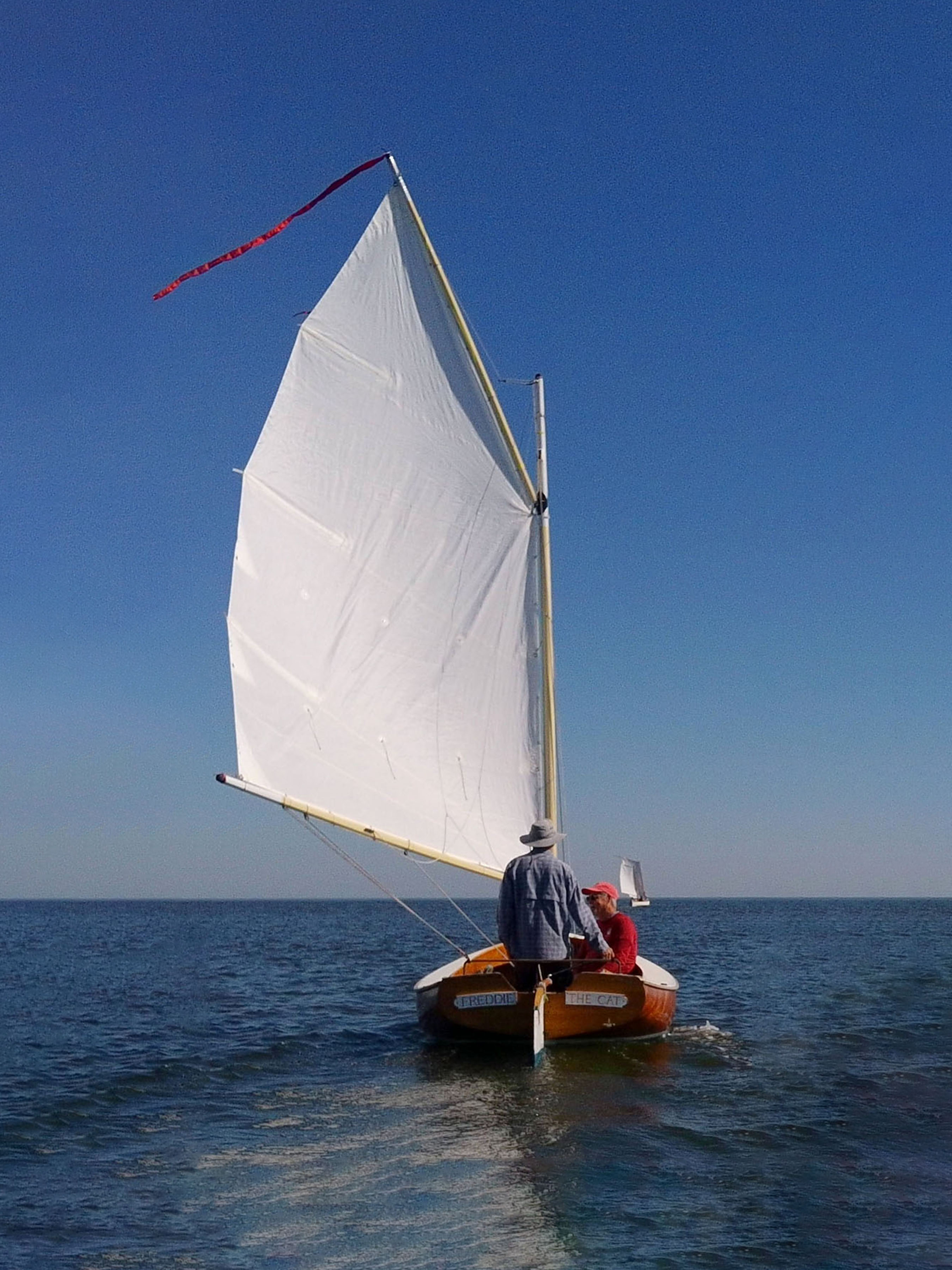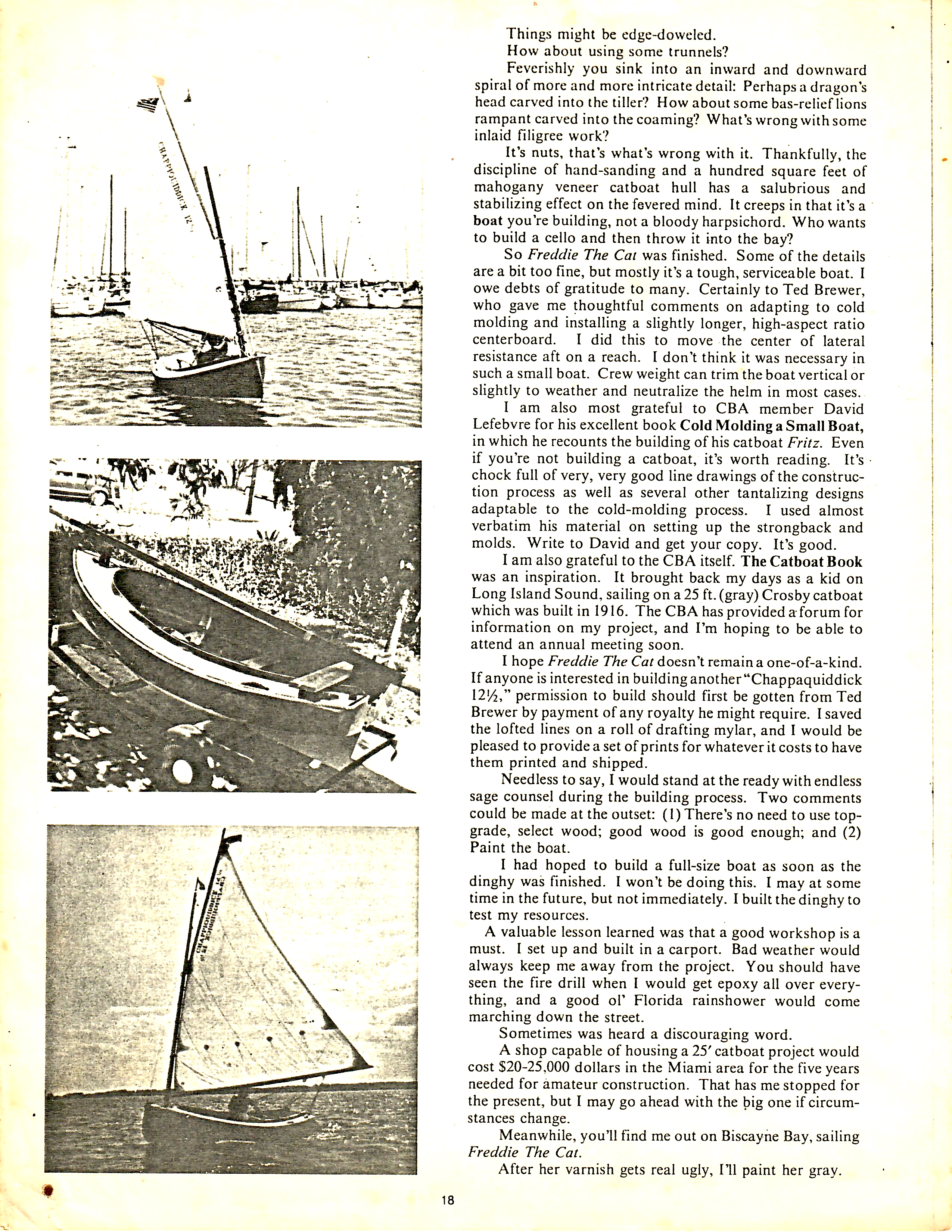 Freddie the Cat Freddie the Cat was built by Robert Treat in 1983, it is a half scale version of Ted Brewers Chappiquiddick 25. Strip planked with Cypress and two diagonal veneers of African Mahogany.